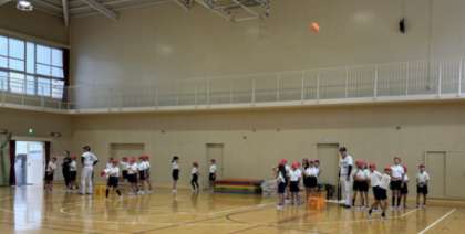 4年生はオリックス・バッファローズによる出前授業でティーボールを行いました。野球選手を直接見たことに感動したり、投げ方や打ち方の指導を受けて上手になったりする子どもがいました。