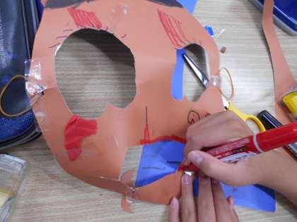 出来上がったお面を着けて、全身仮装するのが楽しみです!