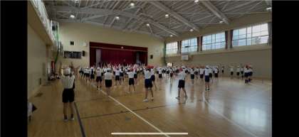 この学年の子どもたちにとって、蒲生グラウンドでの運動会は初めてのため、より大きな動きでダンスを踊ろうと工夫しています。