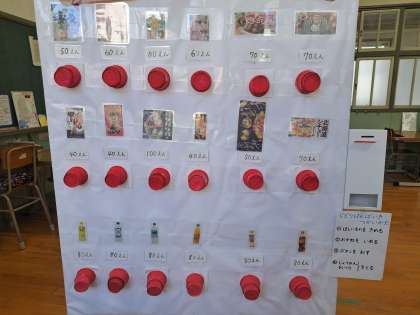 これまで、本物の硬貨を見たり、自動販売機を実際に見に行ったり、おもちゃのお金を使って手作り自動販売機やお店屋さんごっこで買い物をしたりしてきました。