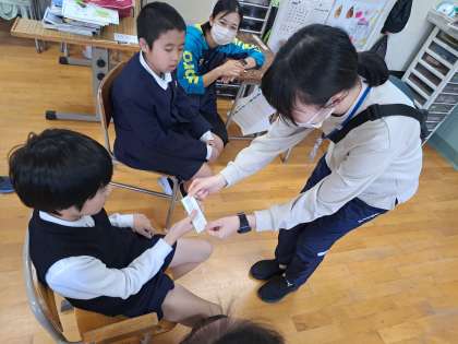 お手伝いをした後にもらったものは「ありがとうチケット」です。お手伝いをし終えた子どもたちは、「助かったよ。ありがとう。」という言葉と共に、チケットをもらってとてもうれしそうでした。