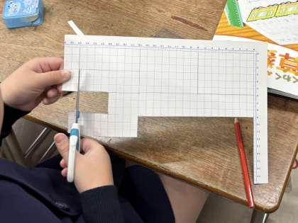 はこの形を紙に写し取ったり、工作用紙ではこを作ったりしながら、「どのはこも面の数は6つだ。」「同じ形の面が2つずつある。」など、たくさんのことに気付きました。