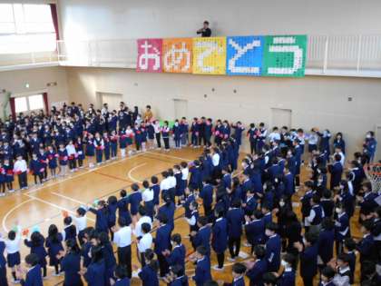 1年生から5年生までが、6年生へ感謝の気持ちを伝えようと一生懸命練習し、合唱やリコーダー演奏、呼びかけなどを披露しました。