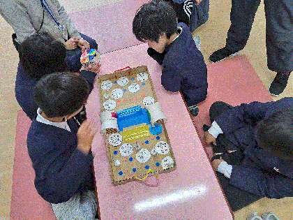 すごろくは児童の手作りで、「おひるね」「ものまね」「歌を歌う」など、楽しいマスが用意されていました。ゴールした児童にはメダルのプレゼントもありました。