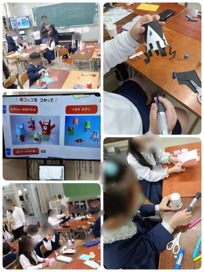 2年生の図工「そらから こんにちは」の学習です。「貼る」「切る」「描く」の活動をしました。一人ひとり楽しみながら創意工夫し、オリジナル作品を創り上げていました。最後にはどんな作品が出来上がるのか、とても楽しみですね!