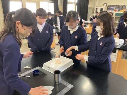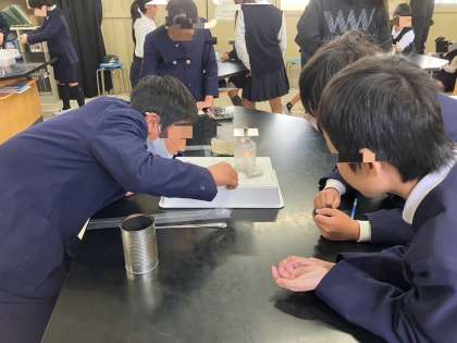 底のないびんと、ろうそくや線香を使って、燃え方や空気の動きを調べました。火を使うので、緊張感をもって真剣に取り組んでいる姿が印象的でした。