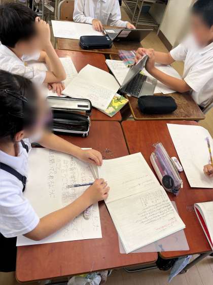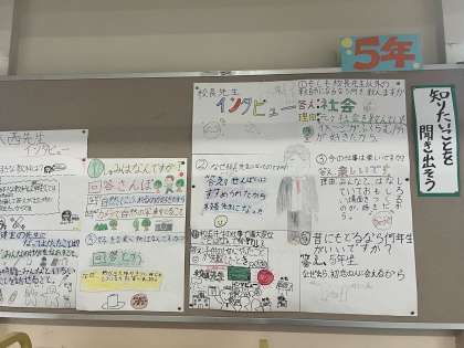 各班で協力して質問を考え、みんなで画用紙にまとめました。相談し合い、細かい工夫をしながらまとめる姿が見られました。