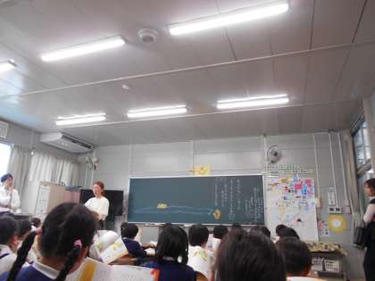 1組の道徳では、「およげないりすさん」というお話を読んで、誰とでも仲良くするにはどうすればいいか考えました。
