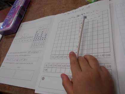 2組の算数では、好きな遊びやたんじょう月等の子どもに身近なものを通して、表やグラフの作り方を学びました。