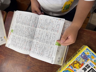 国語辞典の使い方を学習しました。見出し語に注目して調べました。たくさんの言葉があってびっくり!楽しく学習できました。