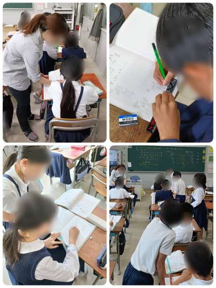 慣れるまで難しいかもしれませんが、一人ひとりが問題と向き合って一生懸命に取り組んでいました。早く終わった児童は、友達に丁寧に教えていました。筆算ができるように、学校や家庭でもたくさん練習していってくださいね!