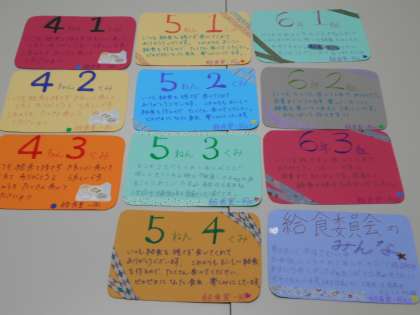児童朝会で給食委員さんがみなさんを代表して渡した感謝状のお礼も、1クラスずつ心をこめて書いてくださいました。2月1日(月)調理員さんから渡されますのでお楽しみに!