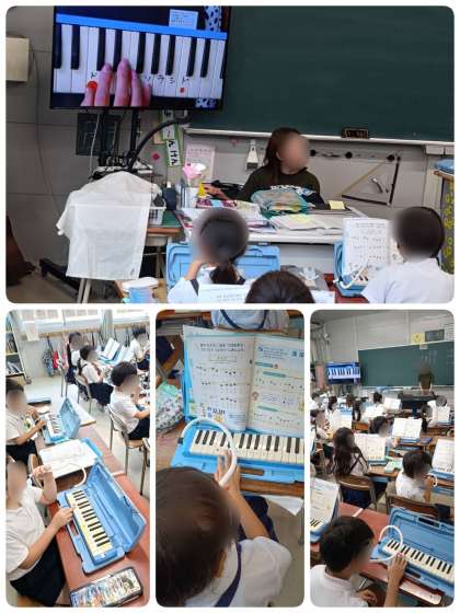 2年生の音楽の学習です。鍵盤ハーモニカで「かっこう」を弾きました。