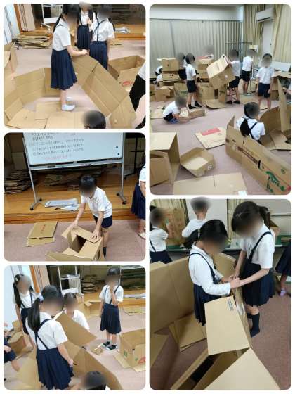 3年生の図画工作「造形あそび クミクミックス」の学習です。段ボールを使い、「切る」「折る」「重ねる」「並べる」「穴を開ける」「丸める」などの方法を一人ひとりが選び、自由に制作していましました!みんな意欲的にとても楽しそうに活動していました!どんな作品が出来上がるのか、とても楽しみですね!