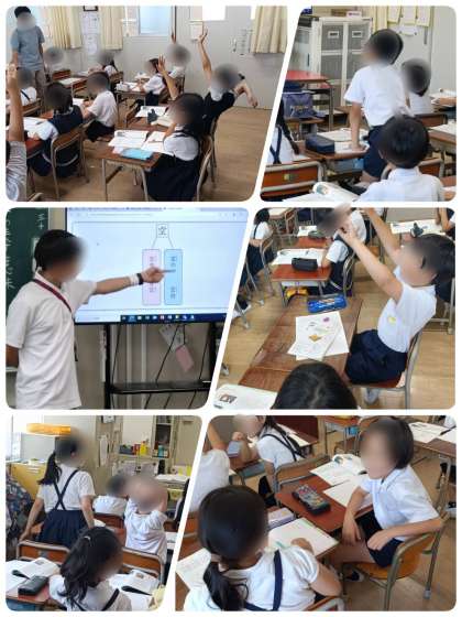 「空」を使った言葉に、「空の皿・空白」「空中・青空」の2パターンがあり、それぞれどう意味が違うのかを、ペアで話し合い、全体で交流しました!たくさん手を挙げて、意欲的に学習していて素晴らしかったです!