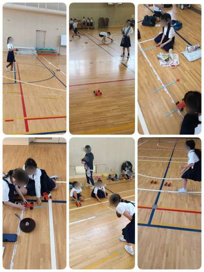ゴムを多くねじると、遠くまで走らせることができることを知りました!一人ひとり楽しそうに車を走らせていました!これからも色んな実験を通して、知らないことをたくさん学んでいってくださいね!