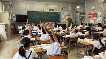 いつもの先生のようで何かが違う…。少しの緊張と楽しさが混じった表情で、懸命に授業を聞いている子どもたち。ご家庭でも感想を聞いてみてください。
