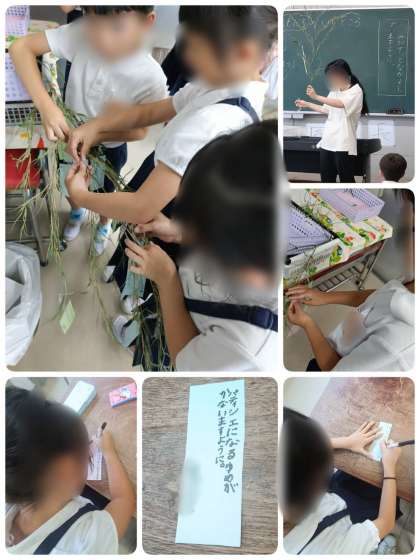 2年生の七夕かざりの様子です。本日は、「七夕」ということで、短冊に願い事を書きました。