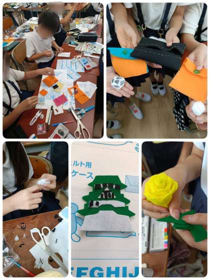 一人ひとりが、ペンケースやティッシュ入れ、小銭入れなど自由に小物作りに励んでいました!糸を通すのも素早く、上手に切ったり、縫ったりしていて、素晴らしかったです!完成がとても楽しみですね!