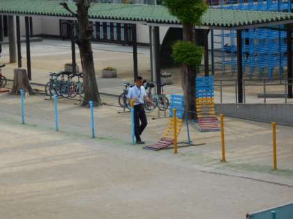 午後5時。校庭の遊具を点検のため見回りをしている教頭先生の