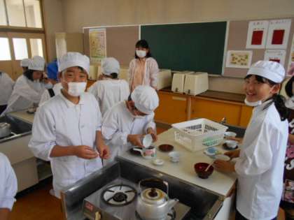 家庭科の学習は5年生から始まります。今日は「日本茶を入れよう」