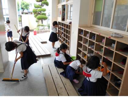 お昼休みの後は、毎日おそうじの時間です。1年生も入学後から、先生