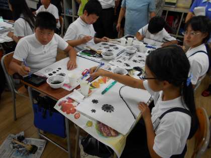 先週の金曜日、今週の月曜日と2日間にわたって「墨アート」の出前授