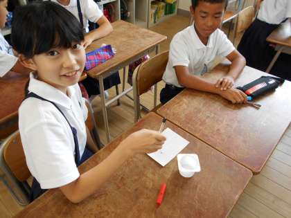 子どもたちが苦戦したのは、箱からリトマス紙をピンセットで取り出す