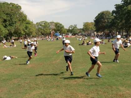 おいしいお弁当を食べ、芝生の広場で鬼ごっこやリレーをした、万博記念公園。