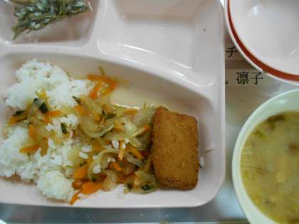 卵を除去しない一般の児童の給食は、写真下のようになっています。