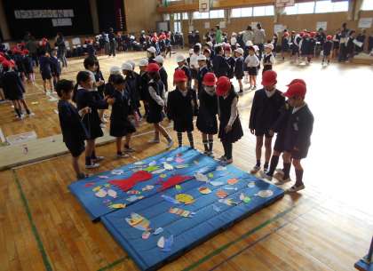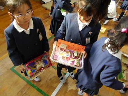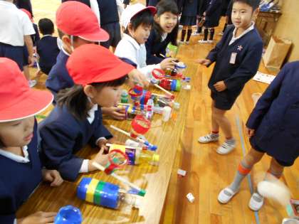 生活科の学習で、2年生が「おもちゃ」を作り、1年生を招待して