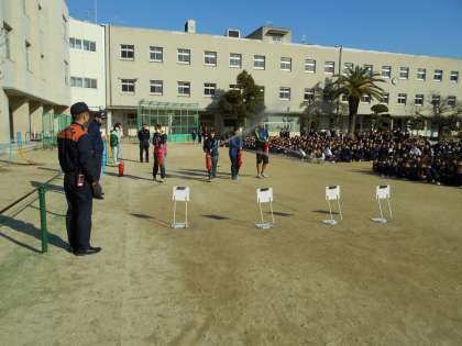 運動場では城東消防署の方が避難訓練を見て指導講話をしてくださいま