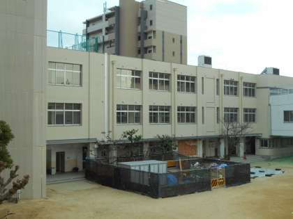 これまであった黒いシートが取られ、美しく生まれ変わった校舎が
