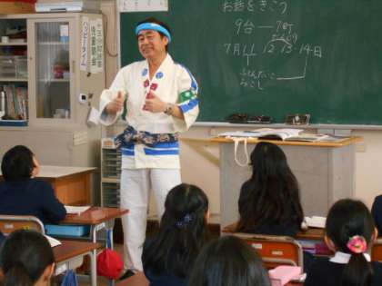 たちも目をぱちくり。校長先生の地元の「杭全神社の夏祭り」の