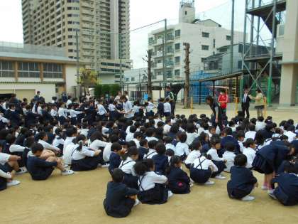 訓練が終わった後に、担当の先生からは避難時の約束の話と校長先生か