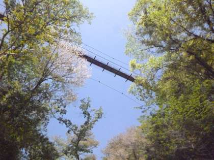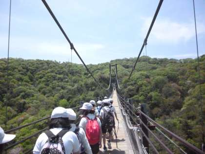 5月2日(火)、五月晴れのいいお天気、5年生は星田園地に遠足へ行きました。星のブランコ(大きなつり橋)を下から見上げていたら、桜の花びらが降ってきて、子どもたちからは歓声が・・・!そのあと、実際に吊り橋を見て山の景色を満喫。どこから見てもとてもいい景色でした。長距離でしたが、さすが5年生、最後までしっかり歩き、楽しい遠足となりました。