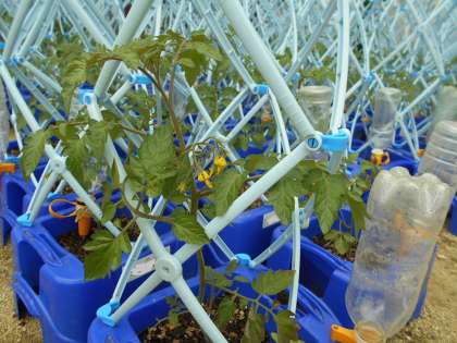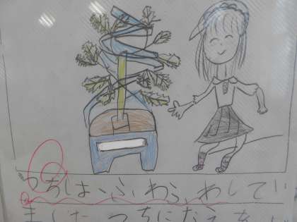 学校の西の遊具の近くに並べています。学年全員分なので、この通り