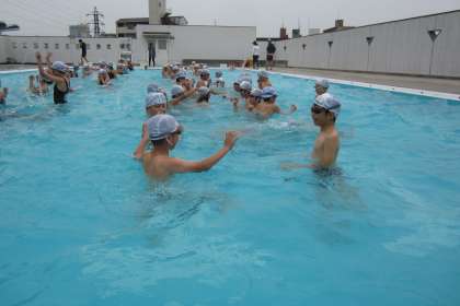 1年ぶりの学校のプール。いい天気でしたが、水から上がると少し
