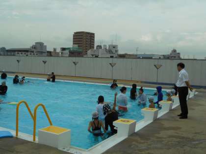 放課後、水泳の特別練習が行われました。5、6年生で25メート