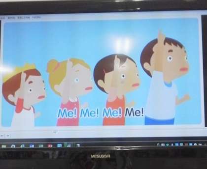 では、DVD教材の「STORY」(英語の短いお話)を見て、聞いた