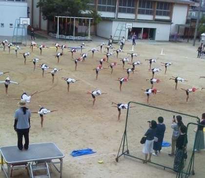 運動場では各学年が団体演技の練習を公開!!「うちの子はどこかな