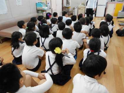 保健室の先生のお話を聞く姿勢も「背筋がピン」と伸びていて、感心しました。