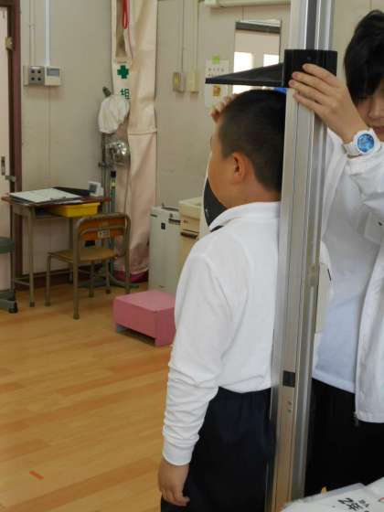 先週から発育測定が始まっています。保健室の前を通ると、どの学年の時も、靴がきれいに脱ぎ揃えられていました。