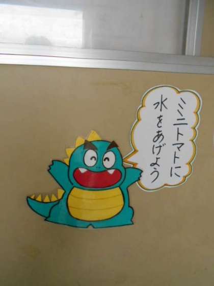 2年生が生活科の学習で「ミニトマト」をしています。毎日忘れずに水やりをし、成長の様子を観察しています。小さく実がなっているのを発見して喜んでいました。赤くなるのが楽しみですね。