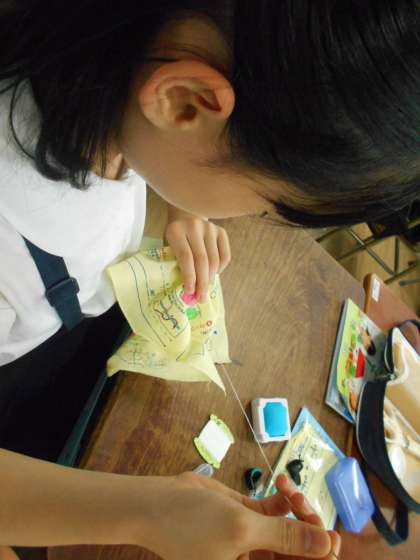 5年生は、家庭科の学習でボタン付けに挑戦しました。おうちの方にも教えていただきながら学習をすすめることができました。