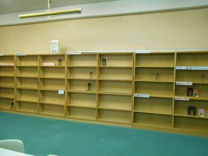 「ここは、図書館室です。でも、本棚に本が並んでいませんね。」