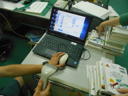 7000冊くらいの本の整理をするので、今年の夏休みの図書館解放は残念ながらできませんが、秋から本の貸し出しをするときには、『ピー』と本のバーコードをかざすと、『誰が、いつ、どんな本を借りたのか』を管理することができます。
