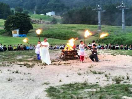 キャンプファイヤーでは、クラス対抗で声を出したり、校歌を歌ったりしました。心に友情の火をうつすことができました。