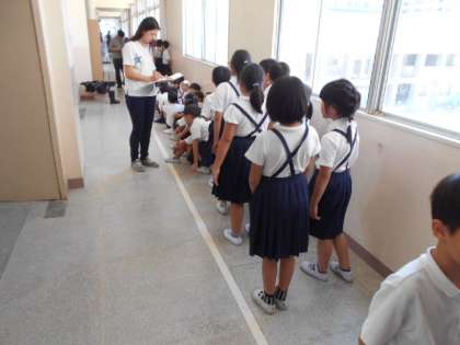 本日3時間目に避難訓練を行いました。とても静かに行動でき、担任の先生の指示をしっかり守れていたので、校長先生からもお褒めのことばをいただきました。