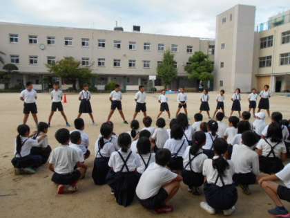 月曜日に応援団の結団式がありました。100人を超える応援団員は、迫力満点です。 今年の運動会は、蒲生グラウンドで行うので、「いつも以上に大きな声でがんばらないといけないな!」と初日から意欲的に取り組んでいました。